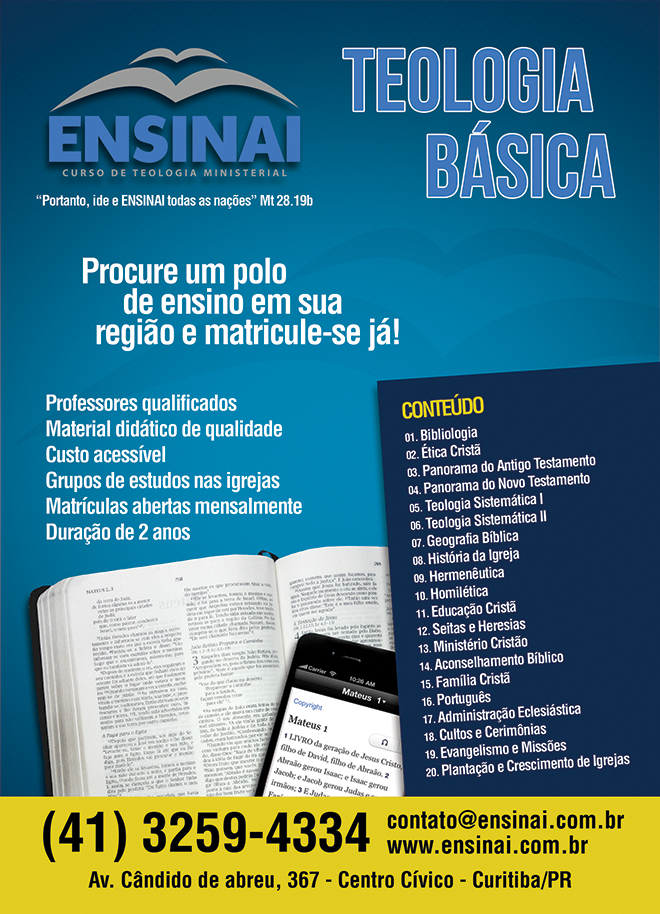 Documento de Conclusão do Curso: Tendo sido aprovado nas 20 matérias deste curso, o aluno estará apto a receber o Certificado de Teologia Básico de Teologia.