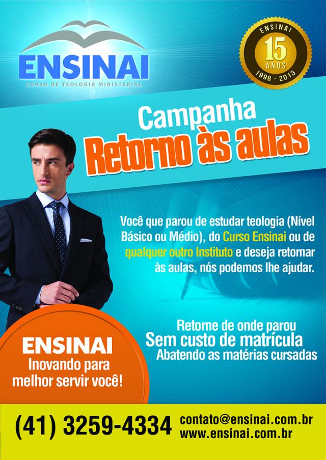 Você que parou de estudar teologia (Nível Básico ou Médio), do Curso Ensinai ou de qualquer outro Instituto e deseja retornar às aulas, nós podemos lhe ajudar.